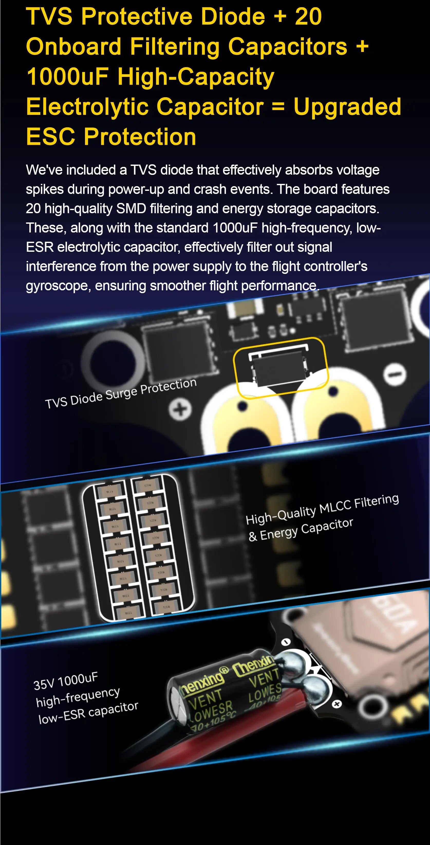 Durable & Reliable: Equipped with TVS protective diodes for surge protection, ensuring your drone stays safe in high-stress environments.