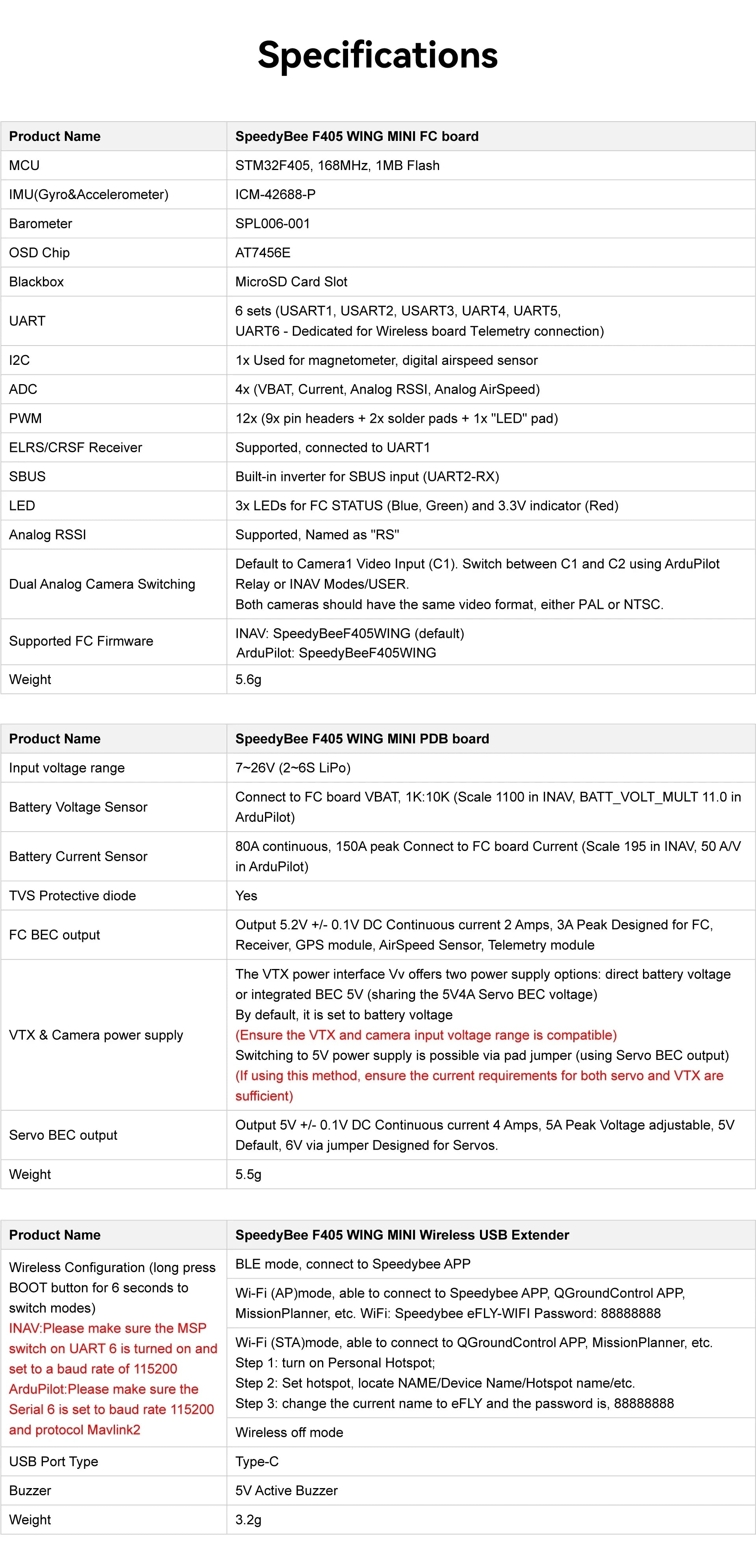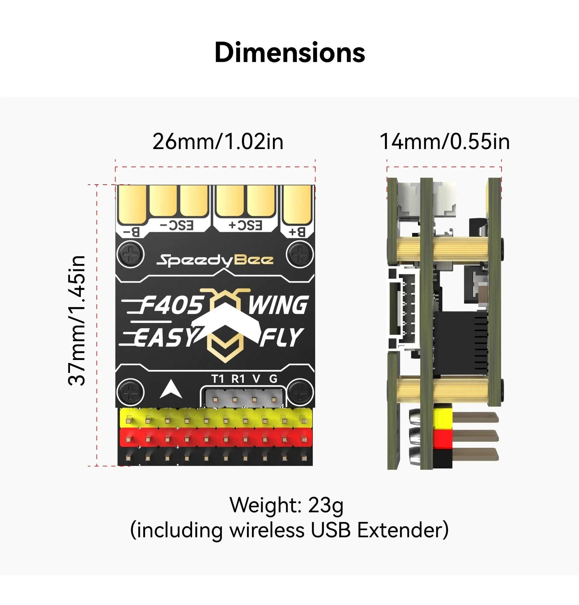 Package Note: Only includes the SpeedyBee F405 WING MINI Flight Controller and associated modules. Batteries, servos, and additional components are not included.