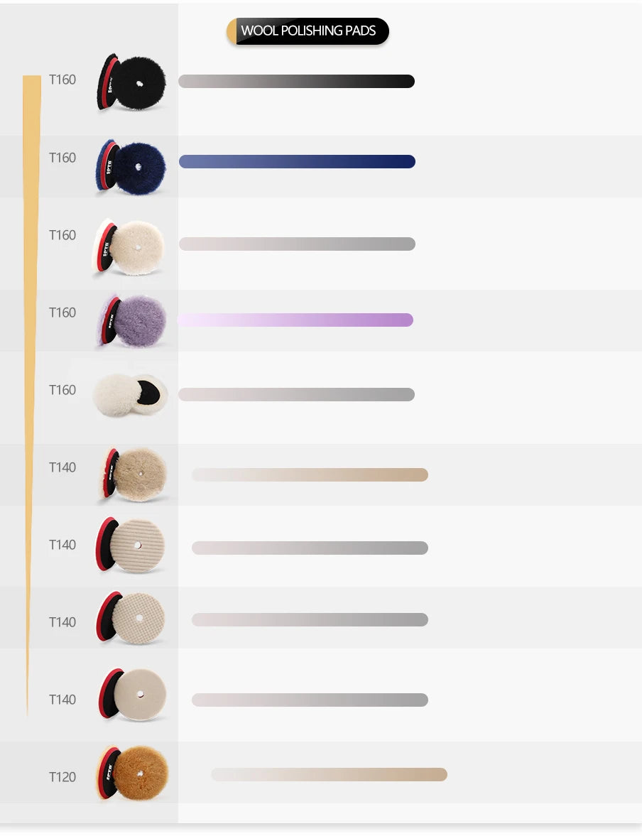 - T100 Light Cut Wool Pad: A versatile, universal pad that works well for light imperfections and swirl marks, giving a smooth and level finish.