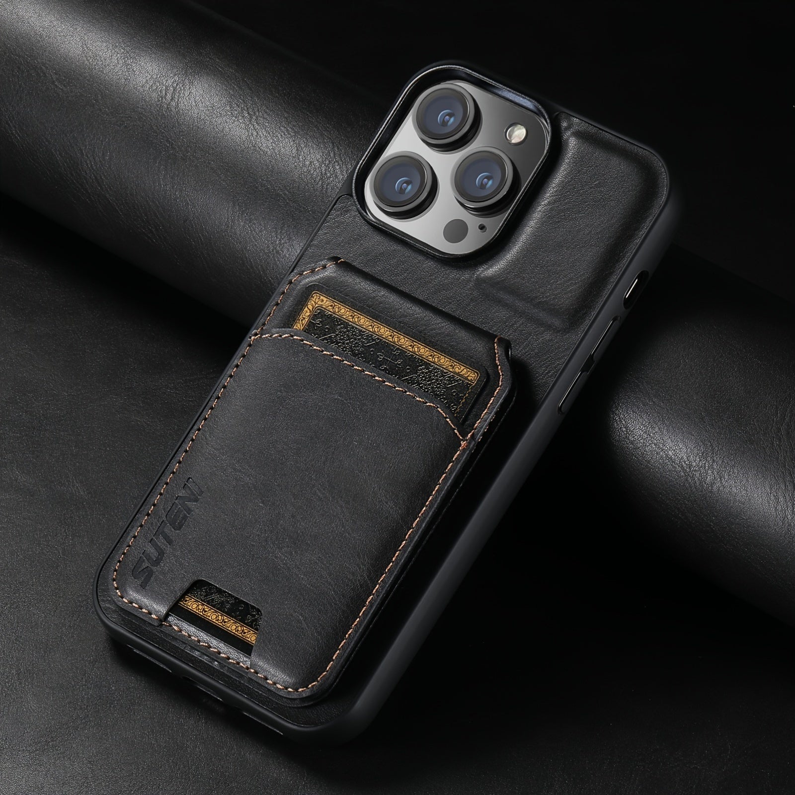 Suteni Luxury PU Leather Card Holder Phone Case - Compatible with iPhone 15 Pro Max, 14 Plus, 13, 12, 11, XR, XS Max