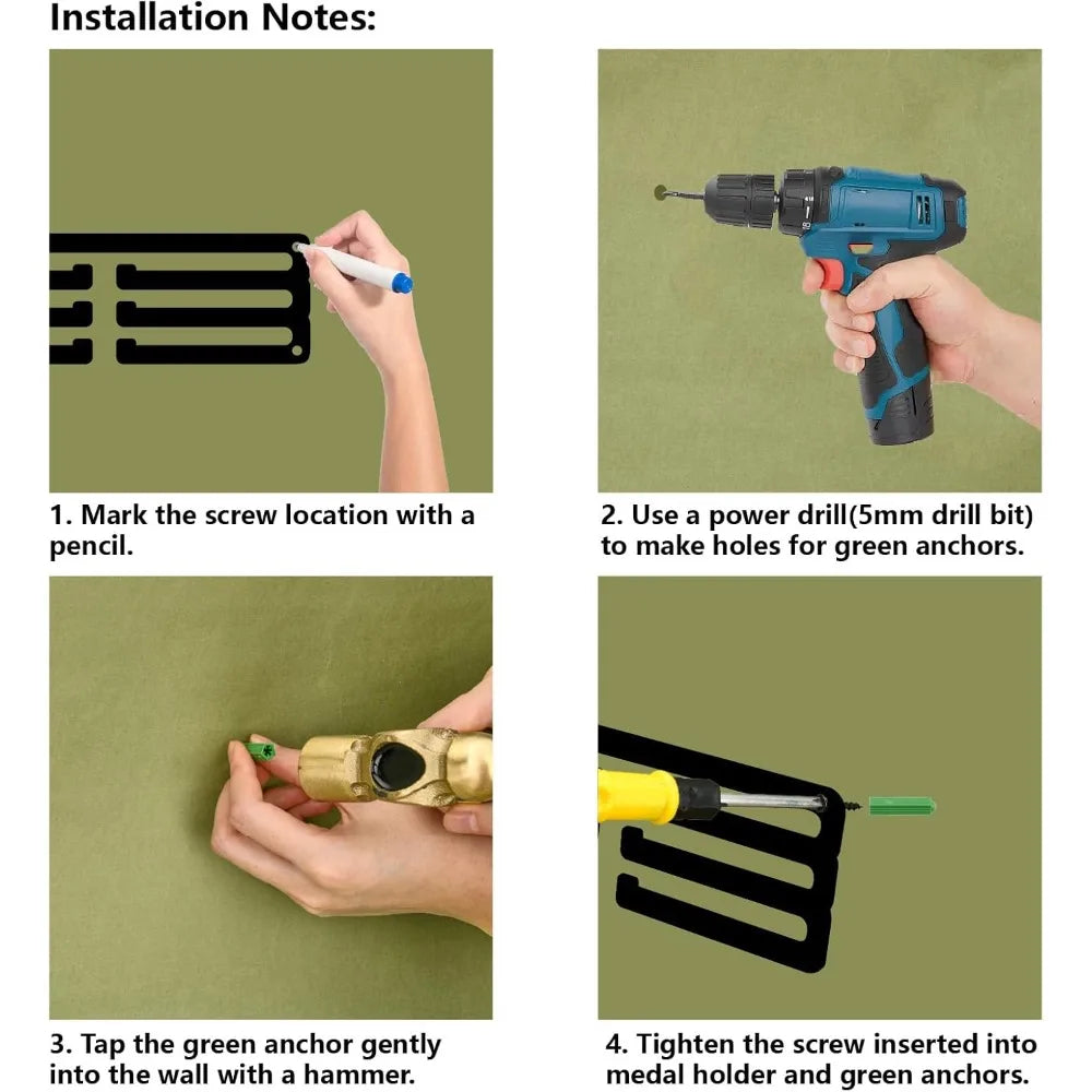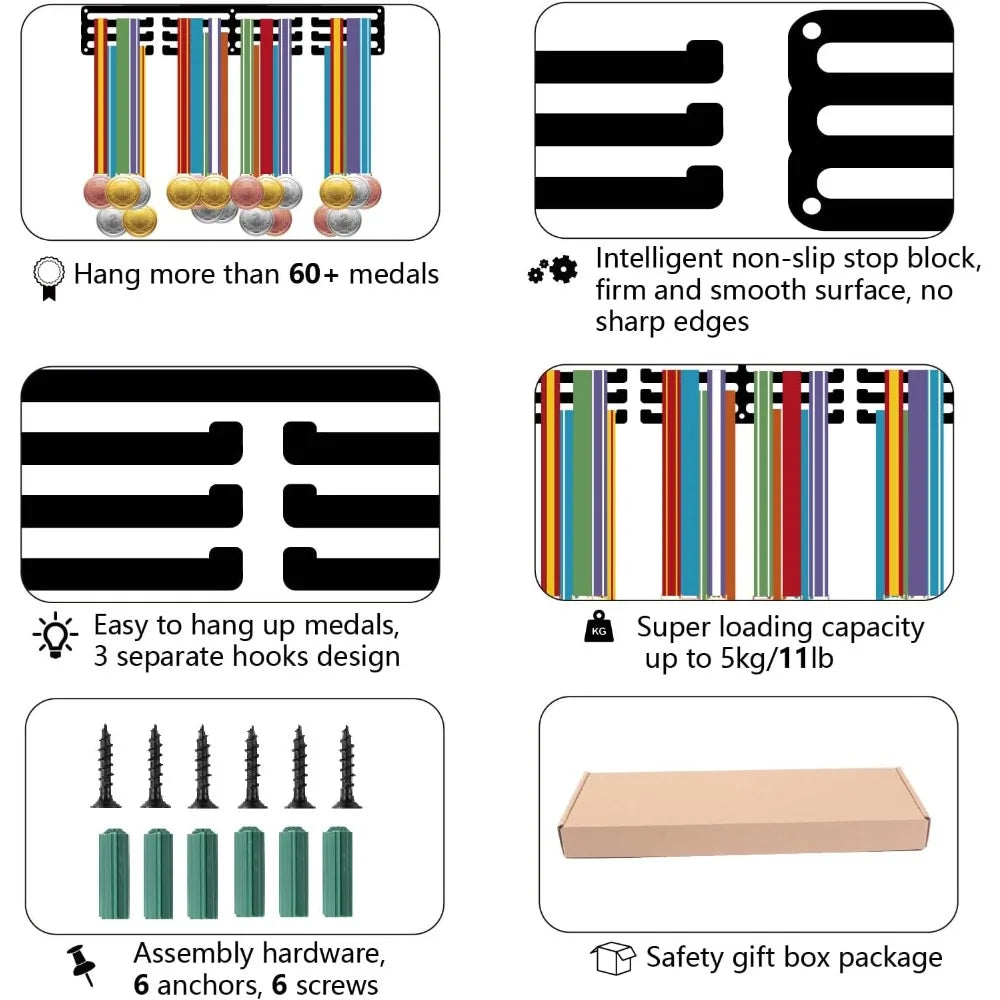 Premium Metal Construction: Made of durable iron, this medal holder supports up to 5kg/11lb, holding more than 60 medals securely without bending or rusting.
