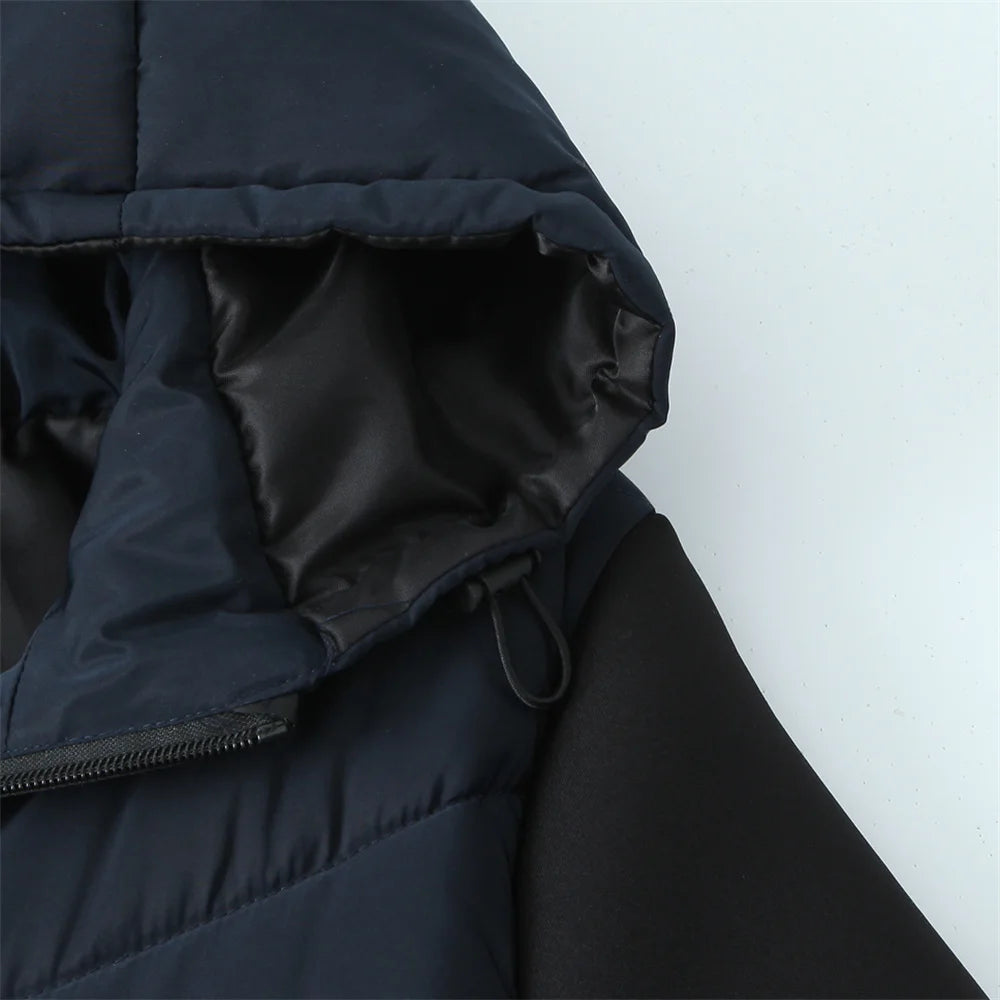 Taop&Za Women's Autumn Cotton Jacket – Fashionable Casual Long Sleeve Stand Collar Hooded Patchwork Coat