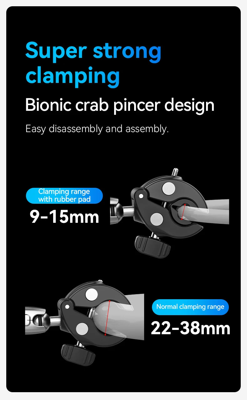 - Super Strong Clamping: Bionic crab pincer design for maximum security.