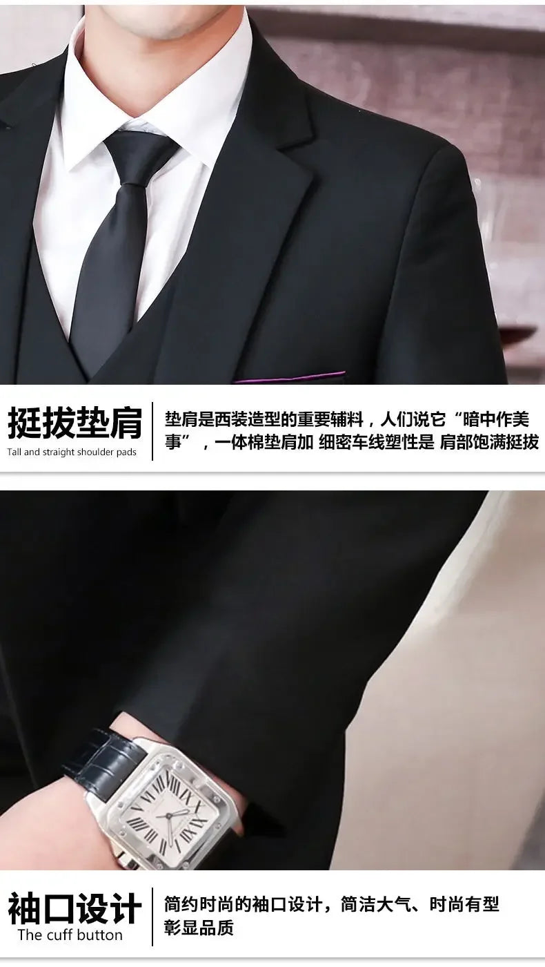 Three-Piece Set: Includes blazer, vest, and trousers for a complete polished look.