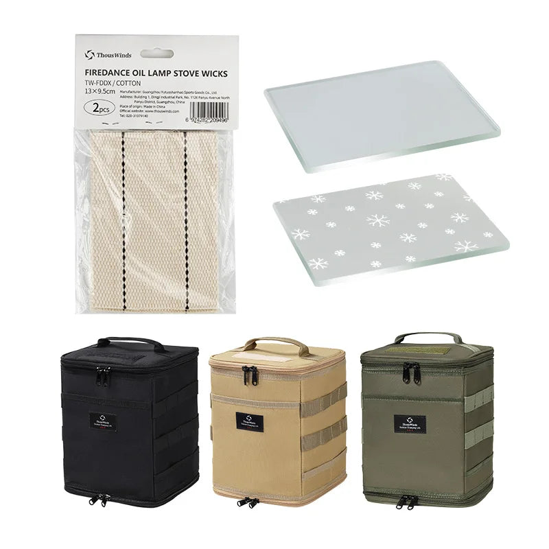 Enhance your outdoor adventures with Thous Winds Firedance Oil Lamp Stove Accessories, the perfect companion for camping, hiking, or backyard gatherings. This set includes oil lamp wicks, storage bag, and glass components designed to keep your Thous Winds oil lamp ready for use. Ideal for camping enthusiasts, these accessories ensure safe, reliable, and long-lasting performance without the need for electricity.