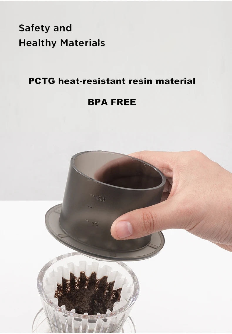Crafted from high-quality plastic, it is lightweight, durable, and easy to use, making it perfect for home baristas, coffee enthusiasts, and brewing aficionados. Its ergonomic design and lid help maintain temperature and reduce spills, ensuring a clean, consistent, and enjoyable brewing experience every time.