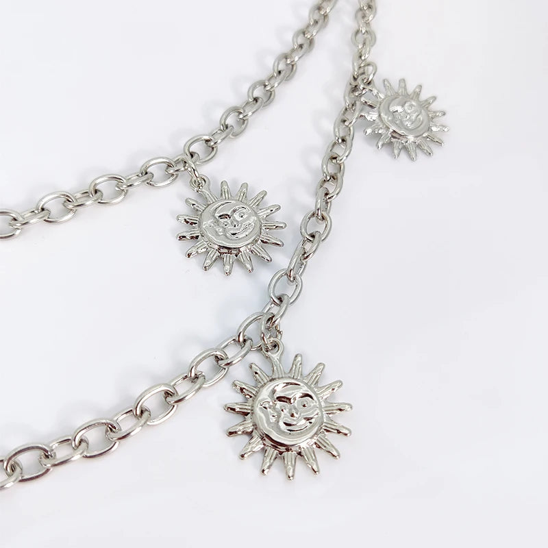 Embrace the punk spirit with this belt's solid metal chain design. The geometric shapes and crescent moon charm bring a cool, alternative vibe that will make you stand out from the crowd. Perfect for adding some edginess to your jeans, pants, or even your bag, it’s the accessory that speaks volumes.