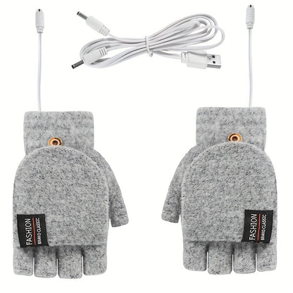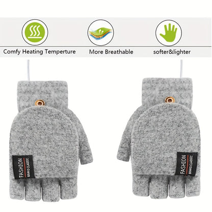 Unisex Washable USB Heated Gloves - Portable Half-Finger Design with Optional Mitten Cover - Ultimate Winter Warmth
