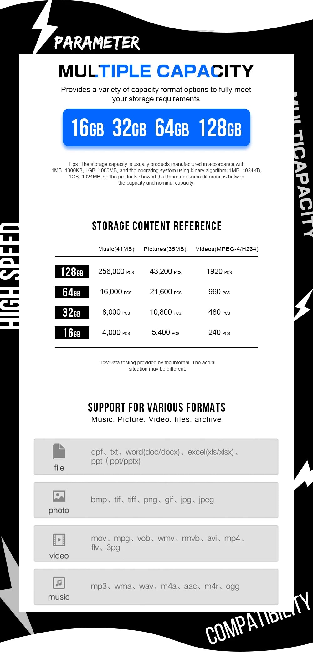 Actual usable capacity varies slightly due to system file formatting and measurement standards: