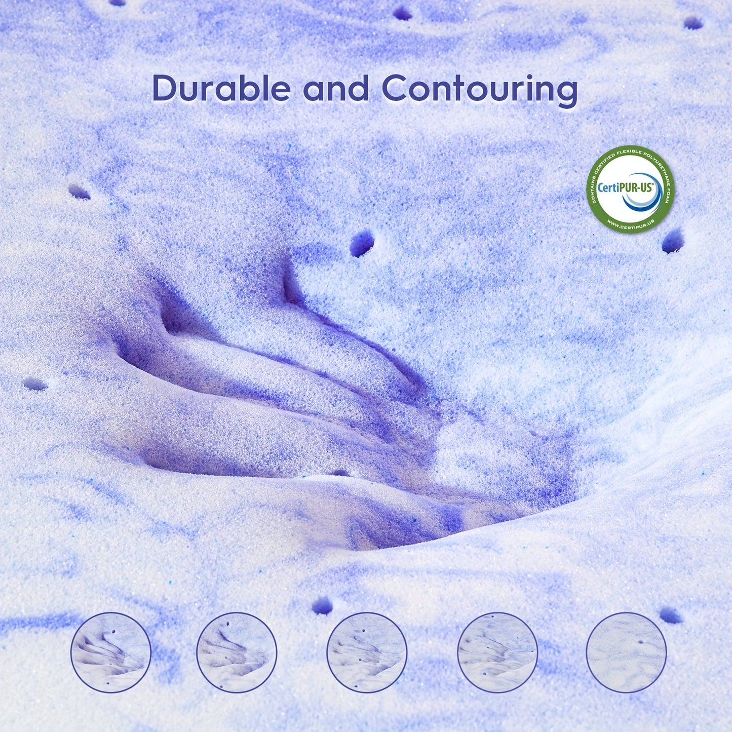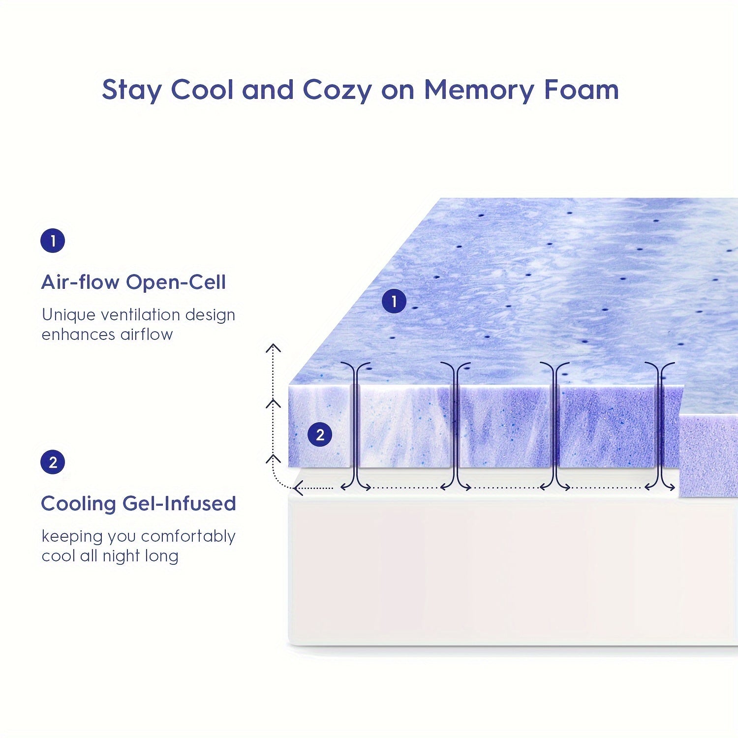 Cooling Gel Infusion: Say goodbye to overheating during the night. The cooling gel infused into the memory foam helps regulate your body temperature, keeping you cool and comfortable as you sleep.