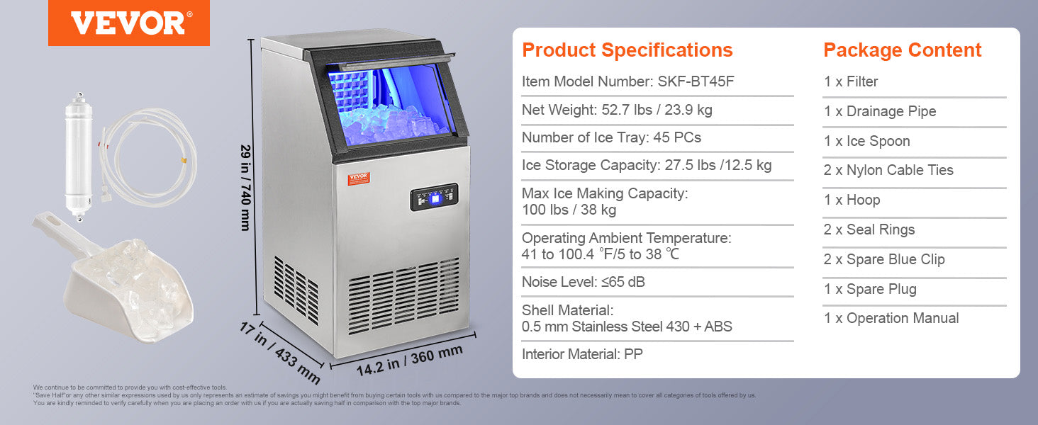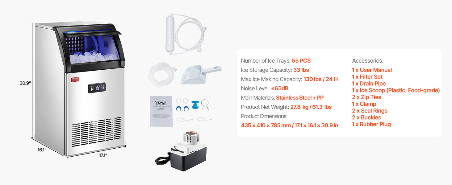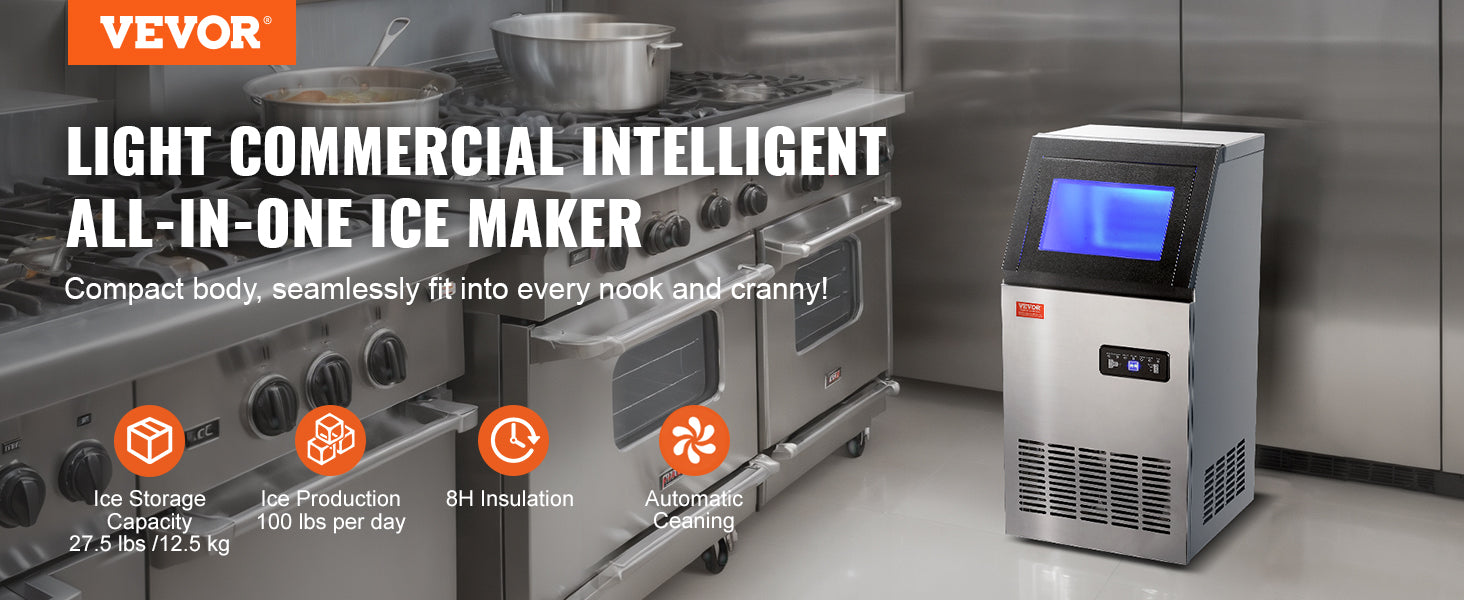 Don't settle for slow ice production or noisy machines. Upgrade to the VEVOR Commercial Ice Maker and enjoy quick, high-quality ice with minimal effort! Ideal for busy homes and small businesses, it’s your one-stop solution for refreshing cold beverages all day long.