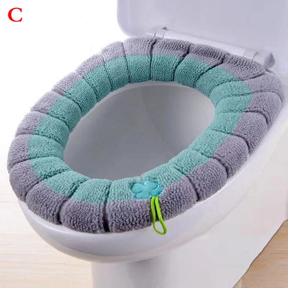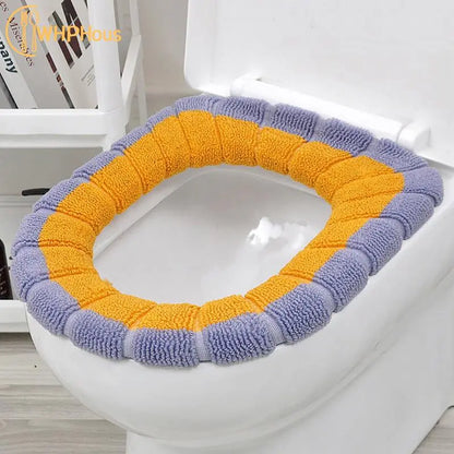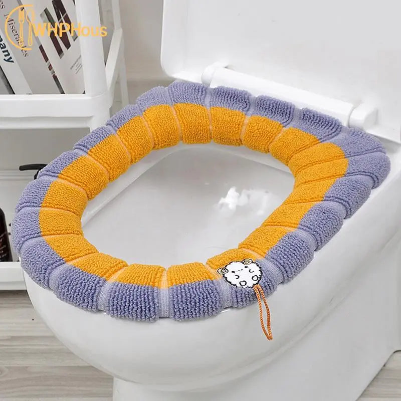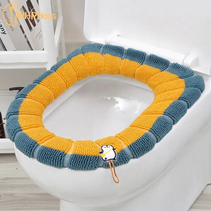 Winter Warm Washable Toilet Seat Cover with Handle - Thick, Soft, and Knitted Bathroom Cushion for a Cozy Closestool Experience