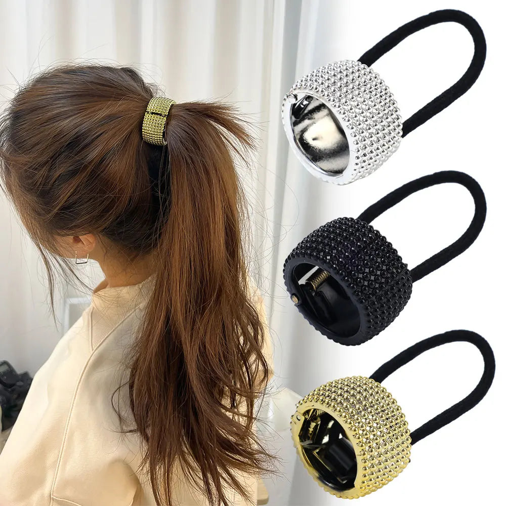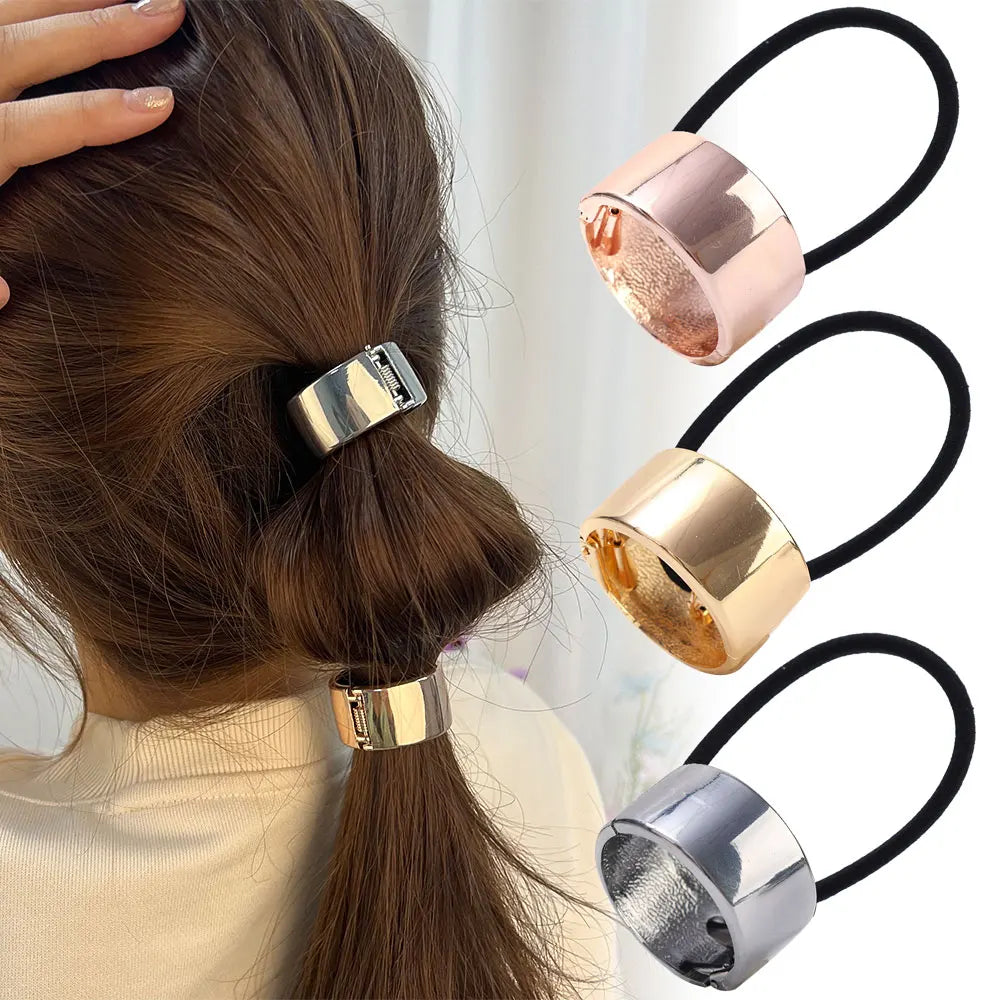 Vintage Metal Ponytail Holder Buckle - Women's Elastic Clip Hair Rope, Fashionable Round Hair Ties Rings - Stylish Headwear Accessory