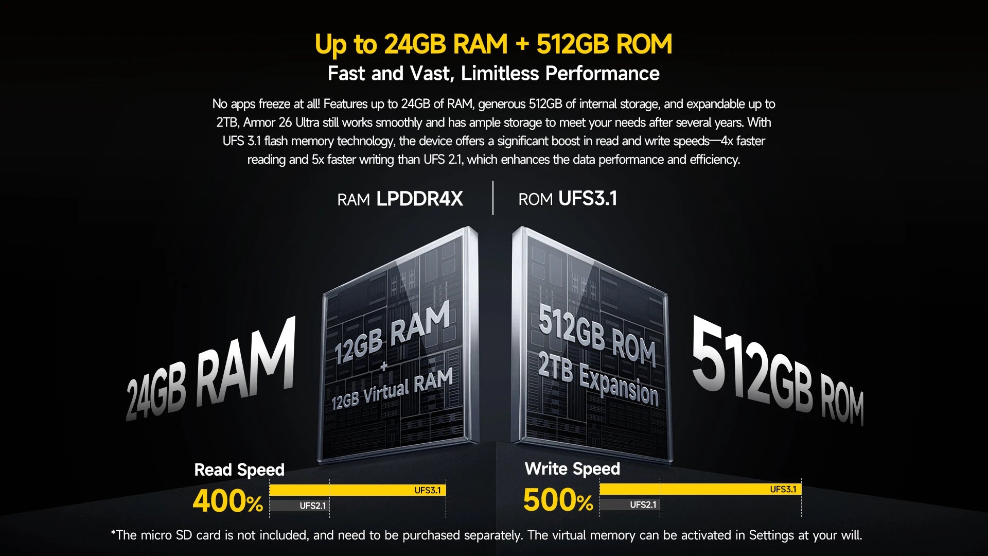 - Unmatched Durability: Designed with IP68/IP69K and MIL-STD-810H certifications, the Armor 26 Ultra is waterproof, dustproof, and shock-resistant. It can withstand drops from up to 1.5 meters, making it the perfect companion for the most rugged conditions.
