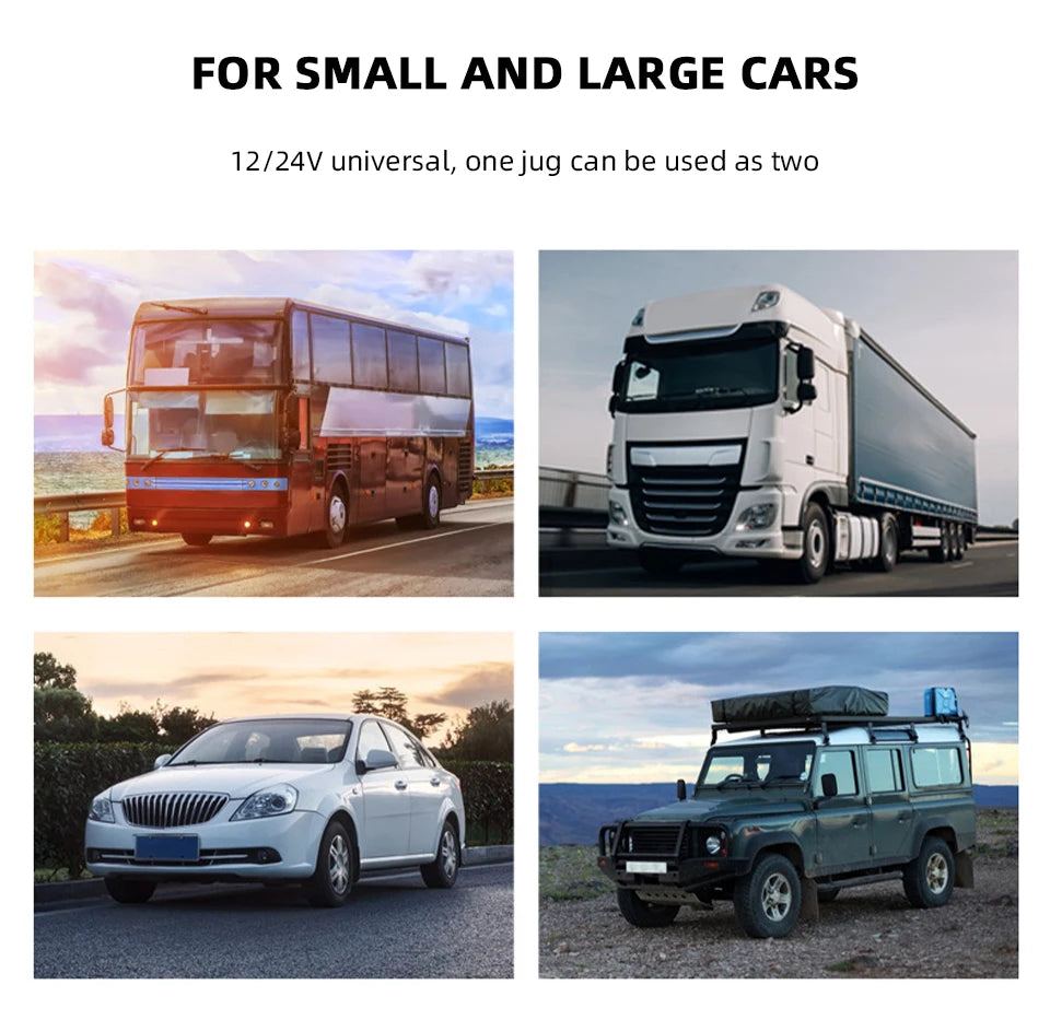 Universal Use: Supports both 12V and 24V, making it ideal for cars, trucks, vans, and even home use with an adapter.